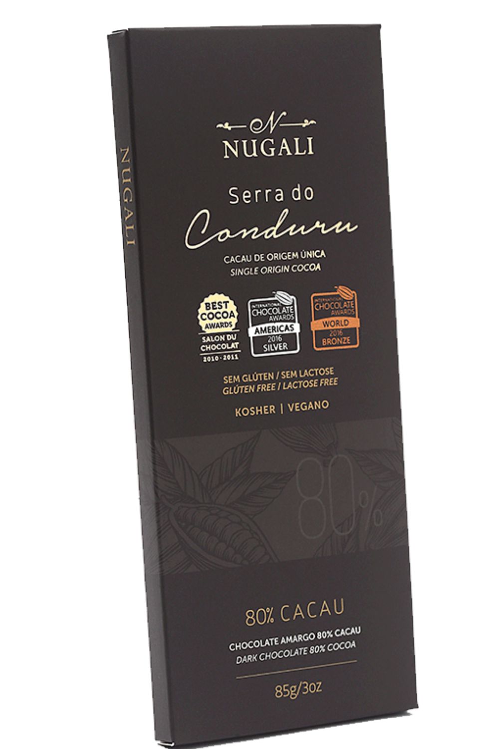 Primeiro chocolate brasileiro feito com cacau de origem única. Cacaus Trinitários e Scavinas, cultivados em sistema sustentável na Bahia, preservando a mata nativa. Notas frutais e cítricas, rico em flavonóides. Premiado com medalha de Prata no Internacional Chocolate Awads América e Bronze Wordwide. Menos açúcar e alto teor de cacau, um chocolate saudável, sem ingredientes de origem animal, sem conservantes, corantes ou aromatizantes artificiais. Sem glúten, sem lactose. Certificado Vegano e Kosher.