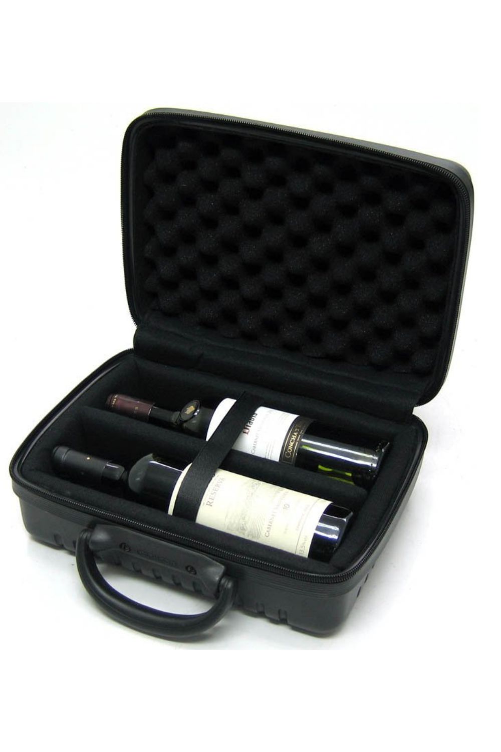 MALA EM POLIETILENO REFORÇADO MODELO POLI 253613 PARA TRANSPORTAR DE 02 GARRAFAS COM SEPARADORES AJUSTÁVEIS E ESPUMA AVELUDADA.