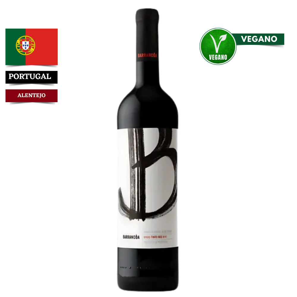 Este Barrancôa Tinto é um blend alentejano que expressa a riqueza do terroir português. Com cor vermelho rubi intenso, revela aromas sedutores de frutas negras maduras (ameixa, amora), geleia de figo, baunilha e chocolate. Em boca, é encorpado e suculento, com taninos presentes mas bem integrados, e final longo que remete a especiarias doces.