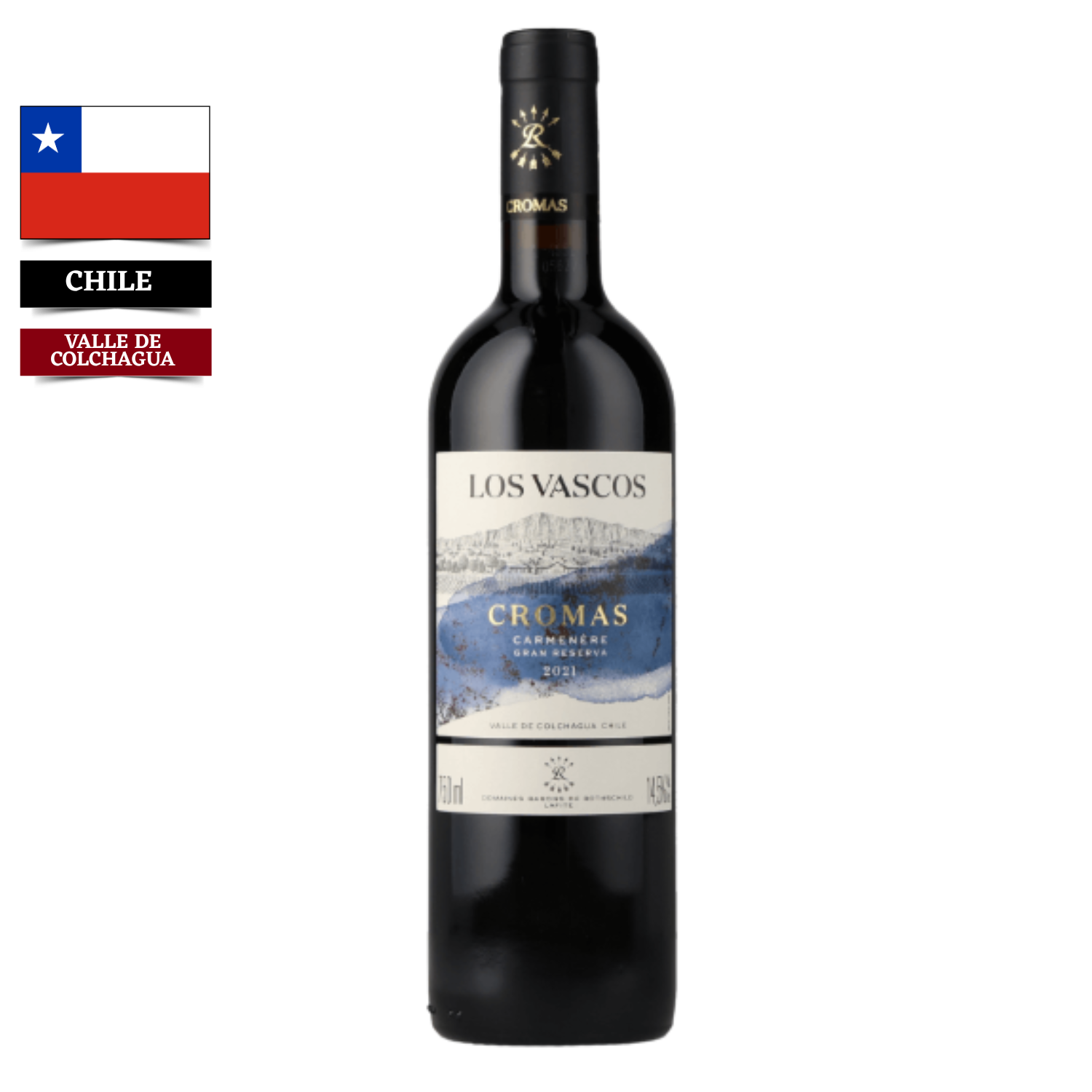 O Cromas Gran Reserva Carménère destaca-se por sua cor púrpura profunda e brilhante.
